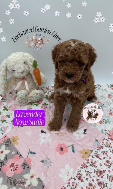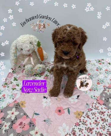 Soft deep red with delicate white touches, Lavender embodies the soothing nature of her namesake. At four weeks, she leans into a sweet, affectionate temperament β drawn to closeness, calm, and connection, like the gentle fragrance that lingers in the air.