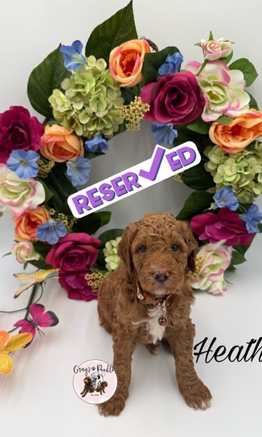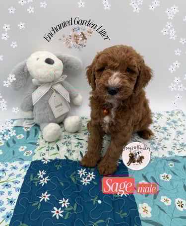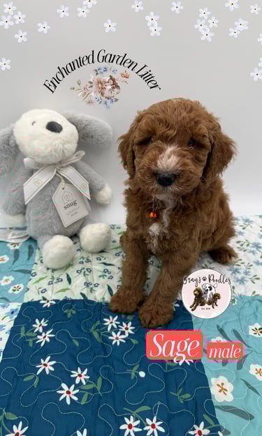 Rich red-brown with a soft white tuft on his muzzle, Sage reflects the quiet wisdom of the herb heβs named for. At four weeks, he appears thoughtful and observant β often pausing to take in the world before engaging. Thereβs a gentle intelligence about him, a calm awareness that suggests he will be a steady, intuitive companion.